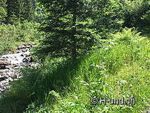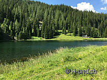 In Laret heisst es dann Strassenüberqueren und ab zum Schwarzsee. Auch dieser ist mit einer Grillstelle ausgestattet, wo die Hunde von verschiedenen Orten aus rein können.
