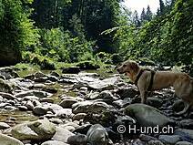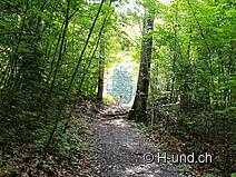 Ab hier geht es erfrischend im Schatten der Bäume und der Sihl entlang. Bei der ersten Brücke gehen wir gerade aus. Überrascht, dass uns niemand in diesem Paradies begegnet, ist dies wohl dem Wochentag zuzuschreiben. In verschiedenen Blogs haben wir gelesen, dass hier durch Tunnels und vorbei an alten Grabsteinen zu laufen sei. Der Weg ist ziemlich neu gemacht und schlängelt sich nun zwischen Sihl und Tunnel hindurch. Grabsteine sehen wir praktisch keine mehr. Wir geniessen diese Ruhe, den Waldduft und halten zwischendurch bei den Bänkli an um dem Rauschen des Flusses zuzuhören - also ich. Kaya erfreut sich der stetigen Abkühlung im Wasser. Nach ca. 1 Stunde gäbe es die Möglichkeit zur Bäsebeiz abzubiegen. Wir laufen weiter, da wir unseren Proviant im Rucksack mittragen und die Bänklipausen bevorzugen. Ab Sihlmatt wird das Sihlbett immer enger und wildromantisch zeigen sich hier paradiesische Stellen, perfekt zum Grillen und Baden geeignet. Auch wir geniessen hier unsere Mittagspause (Restaurant Sihlbrugg wäre ab da ca. 15-20 Minuten entfernt) . Beim Sihlsprung über die Gitterbrücke laufen wir in einem märchenhaften Zauberwald wieder der Sihl entlang, diesmal flussabwärts. Auf dieser Seite gibt es noch viel mehr schöne Stellen um zu verweilen. Je nach Wasserstand sind grössere Kiesbänke und/oder kleine Lagunen ersichtlich. Hier begegnen wir auch mal weiteren Zeitgenossen. Via Sihlmatt beim Schiffli wieder angekommen, überqueren wir hier nun die Brücke wo uns der gleiche Weg wieder nach Sihlbrugg Dorf / Dukes führt.