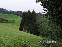 Wir überqueren das Tobel und laufen der Strasse entlang Richtung Echeltschwil. Beim Bauernhof ist der Wanderweg gekenntzeichnet und wir laufen wieder Richtung Neuhaus.