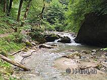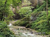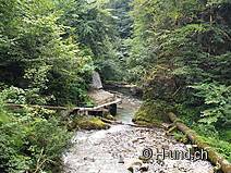 Wer möchte kann hier alles dem Wanderweg entlang Richtung Neuhaus Chastel. Wir entscheiden uns jedoch erneut für das Aabachtobel und gehen, nach erneuter Brückenübequerung, auf dem gleichen Weg retour.