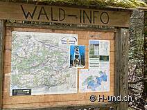 Wir parkieren unser Auto auf dem dafür vorgesehenen öffentlichen Parkplatz im Wald oberhalb von Frienisberg. Hier hat es auch schon eine Informationstafel über den Chutzenturm.
