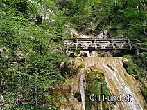 Der Gore Virat - Bach schlängelt sich durch das Naturschtzgebiet den Raimeux hinab und ladet vereinzelt zum abkühlen ein. Über Holzbrücken vorbei an Wasserfällen, führt der schmale Naturweg hoch, durch eine vielfältige Waldvegetation zum Plateau Trois Tilleuls. Hier oben ladet ein grosser gemütlicher Grillplatz zum verweilen ein und bietet einen beeindruckenden Ausblick ins Tal. Eine gewisse Schwindelfreiheit und Trittsicherheit sollte vorhanden sein. Gestärkt machen wir uns dann wieder auf den Weg, teilweise über Weidelandschaft, Richtung Parkplatz von Corcelles. Auf der ganzen Route sind wir niemandem begegnet. Die Route kann beliebig vergrössert oder verkürzt werden. Achtung: Zeckenreiches Gebiet!