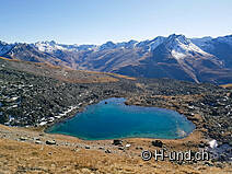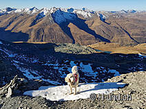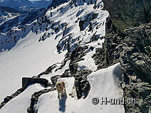 Mit der Stirnlange sind wir die ersten Meter in den anbrechenden, angenehm kühlen Tag von der Strasse in Cresta Richtung Bandseen gelaufen. Vorbei an den wunderschönen Seen geht es bald steil zur Bärgglafurgga hoch die Zorro lange vor mir erklommen hatte und den Tiefblick auf die ander Talseite zuerst alleine genissen konnte. Weiter geht es in leicher Kletterei über das Talihorn zum Gipfel des Piz Platta der mit einer Querung von links nach rechts erreicht wird. Dank der Firnfelder kann sich der Hund auch im Sommer immer wieder abkühlen. Abgestiegen sind wir über die gleiche Route.