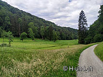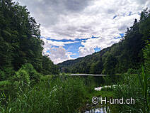 Parkiert habe ich in Kindhausen auf dem öffentlichen Parkplatz, wo die Rundtour auch gleich begann. Der Weg führte eine Weile über asphaltierte Landstrasse (auch Veloroute), an Höfen vorbei und zweigte dann ab in den schattigen Wald, wo auch schon der Wegweiser mit Egelsee angeschrieben ist.