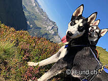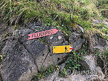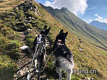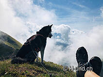 Wir starteten in Studen SZ Ochsenboden. Wenn man von Studen SZ her mit dem Auto Richtung Golfplatz fährt, gibt es dort gratis Parkplätze am Strassenrand (beim Golfplatz darf man momentan nur parkieren für Golf oder Restaurant). Von dort sind wir Richtung Golfplatz gestartet und auf der Höhe des Parkplatzes vom Golfplatz dem Wegweiser Richtung Fluebrig gefolgt. Erst geht es auf breiter Kiesstrasse durch den Wald (Stafelwand) stetig aufwärts, da hat es imner wieder Bächlein und damit Wasser für den Hund. Dort wo der Weg schmaler wird, verschwinden die Bäume. Es geht immer steiler den Hang hinauf und bald kommt noch ein grösserer Bach zu queren danach kommt erst wieder Wasser für die Hunde auf dem Weg runter. Und gleich hinter diesem Bach kommt der erste Viehzaun. Die Schafe waren aber weit weg.