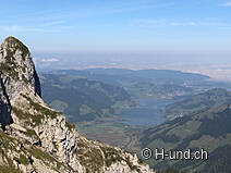 Weiter oben kommt mann wie über einen Sattel und der Horizont wird weit und die Aussicht ist dort schon toll. Kurz orientieren und weiter geht es aufwärts Richtung Fluebrig. Oben angekommen waren wir etwas ratlos, wir standen vor einer weissen Wolkenwand. Kehren uns um und super Weitsicht auf Mythen und die umliegenden Berge aber auch Fernsicht auf entferntere Schneegipfel. Aber da ist heute eine grosse Wolke die uns die Sicht etwas erschwert. Aber auch die Wolke war traumhaft schön.