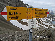 "Simmenfälle". Nach einer super Stärkung beim Bergrestaurant Siebenbrünnen, machen wir uns bereit für den Aufstieg zum Flueseeli. Route bis zum Flueseeli wird nicht näher erläutert, da sie hier schon aufgelistet ist.