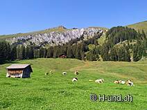 ACHTUNG: Ca. 3/4 der Route führt über Alpweiden, so sind Hunde an der Leine zu führen! Wer die Kühe lieber meiden möchte, begibt sich eher Ende Sept. oder im Frühling (wenn kein Schnee mehr liegt ) und die Kühe noch nicht / nicht mehr auf den Weiden sind, auf die Route.