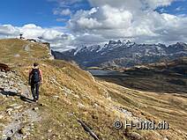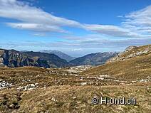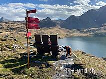 Da unser Hund schon ein Senior ist fahren wir mit dem Auto auf die Melchsee-Frutt. Früher haben wir die Gondeli ab Stöckalp genommen. Mit dem Auto besteht Einbahnverkehr und zur Einfahrt auf die Bergstrasse nimmt man ein Ticket, dieses kann dann oben vor dem Runterfahren entwertet und bezahlt werden. Die Fahrt auf der Bergstrasse ist sehr kurvig und lang. Oben hat es einen grossen Parkplatz, unter der Woche hat es genügend Platz. Am Wochenende denke ich ist es sehr besetzt. Ab dem Parkplatz wandern wir durch das Dorf und kommen an diversen Restaurant, einem Lädeli und einer Holz Gemse vorbei. Die Bergluft ist frisch und das Panorama grandios. Nach dem Dorf nehmen wir den Bergwanderweg Richtung Bonisstock. Immer wieder müssen wir innehalten und das schöne Panorama geniessen und den Blick auf den Melchsee. Die "Swissair" hat eine Holzbank wie Fliegersitze auf halben Weg hingestellt. Hier können wir die Sicht auf den Melchsee geniessen. Auch hat es einen spannenden Wegweiser, wie weit es nach Costa Rica ist steht da zum Beispiel. Wir nehmen den zweiten Teil unter die Schuhe. Auf dem Bonistock angekommen finden wir ein Restuarant mit Terrasse vor und die Bergstation der Gondelbahn. Zur Gondelbahn hat es eine Gitterrostbrücke, vielleicht nicht für jeder Hund machbar. Die Talfahrt geht zügig und schon bald sind wir an der Talstation. Dort bezahlen wir, weil Saisonende ist muss Kesh nichts bezahlen. Zurück laufen wir am See entlang und halten noch kurz in einem Kaffee und geniessen die letzte Abendsonne. Danach gehts zurück zum Auto und nach Hause.