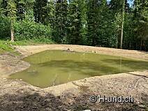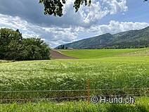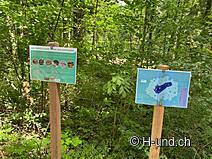 Wir starten bei der Talstation des Weissensteines. Bis hier kommt man mit der Eisenbahn oder mit dem Bus. Am Anfang müssen wir ein paar Höhenmeter durch den Wald gewinnen zu den Dinosauriern Spuren. Danach geht es wieder leicht nach unten durch den Wald oberhalb Lommiswil. Ende Lommiswil kommen wir an den Waldrand und geniessen eine schöne Sicht über das Mittelland bis zu den Alpen. Hier hat es auch ein Bänkli zum rasten. Danach geht es ein kurzes Stück wieder durch den grünen Wald bis zu einer tollen Brätelstelle. Nach der Brätelstelle kommen wir oberhalb Selzach wieder an den Waldrand, auch hier haben wir eine herrliche Sicht über das Mittelland mit der Aare bis zu den Alpen. Hier hat es ein paar Bänkli um die Aussicht zu geniessen. Beim Forsthof machen wir noch einen Abstecher hoch zum neuen Waldweiher. Danach geht es zurück auf den Waldrandweg bis zum Brügglibach. Im Hochsommer hat der Brügglibach meistens kein Wasser mehr, aber im Moment schon und Kesh kann baden. Hier ist auch ein Cache zu Ehren von Kesh versteckt. Nun geht es neben dem Brügglibach hinunter bis zum Waldrand. Hier hat es eine schöne Brätelstelle mit Sicht auf den Jura und einen Biohof mit ihren Wollschweinen. Weiter führt uns der Weg zwischen eingezäunten Kuhweiden durch. Danach durchqueren wir ein Naturschutzgebiet mit Bänkli zum Ausruhen und auch hier gibt es ein Cache von uns. Am Ende des Schlangebrunnenweges folgen wir dem Haagbach, welcher eigentlich immer Wasser führt. Im Tal hat befindet sich der Erlimoosweiher, welcher von Bibern besiedelt ist. Hier laufen wir Richtung Bettlach bis zum Dorfplatz. Ab hier hat es einen Bus zum Bahnhof Bettlach oder Grenchen.