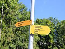 Vom Bahnhof Kempten, genauso wie vom Parkplatz aus kann alles dem gelben Wanderweg „Rosinli“ gefolgt werden. Der schöne Weg schlängelt sich, entlang dem Chämtnerbach, durch das Dorf ohne gross dem Verkehr zu begegnen. Einmal aus der Wohngegend, geht es über einen kleinen Pfad durchs Chatzentöbeli den Wald hinauf bis zum Restaurant Rosinli, welches neben Essen und Getränken, einen grosszügigen Spielplatz, viele Sitzplätze und eine grandiose Aussicht über den Pfäffiker-, Greifen- und Zürichsee, sowie die Alpen bietet.