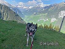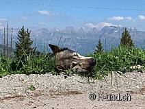 Höhe Alp Untergamidaur können die Hunde ein Bad im Bach geniessen.