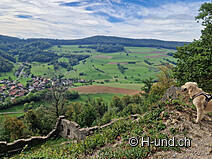 Unsere Autos parken wir in unmittelbarer Nähe der Kirche. Erst ein paar Meter der Strasse entlang, führt uns der Weg schon bald am Waldrand entlang, mit angenehmer leichter Steigung. Mit begleitender Aussicht auf das Schenkenberger Tal schlängelt sich der Weg hinauf bis zur Ruine.