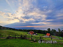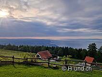 Weiter gehts zum Fünfländerblick wo bei schönem Wetter die spektakuläre Aussicht über den Bodensee bis zu unseren Nachbarländer genossen werden kann. Zwei gut ausgerüstete Feuerstellen stehen hier für längere Zwischenpausen bereit. Alternativ lohnt sich auch einen Abstecher in die Wirtschaft Rossbüchel oder ins Restaurant Treichli.