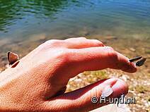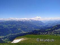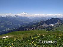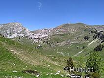 Wir gehen runter an den See und legen Rast ein und schon nach kurzer Zeit gesellen sich ganz viele klein Schmetterlinge zu uns, so, als hätten sie nur darauf gewartet. Gut gestärkt folgen wir dem Flachstück weiter bis zur Abzweigung Vordere Walop, wo dann auch schon die nächsten Höhenmeter auf uns warten. Der Aufstieg via Luchere zum Garte auf über 2000 Meter lohnt sich auch nochmals, denn da wird man mit einem fantastischen Ausblick auf das Berner Alpenpanorama belohnt und bei guter Sicht, kann man gar den Mont Blanc erblicken. Wir legen nochmals kurz Rast ein und geniessen die wunderschöne Aussicht.