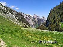 Von jetzt an geht es nur noch bergab. Bei Rohrbode und Rieneschli biegt man jeweils li. ab und folgt dem Wegweiser wieder Richtung Chlus. Es empfiehlt sich die Tour im Frühling oder Herbst zum planen, wenn die Weiden noch nicht / nicht mehr besetzt sind, da sich eigentlich die ganze Route im Weidegebiet befindet. Wir hatten noch Glück. Alpweiden mit Herdenschutzhunden könnten auch vorkommen, welche ich aber nicht gesichtet habe.