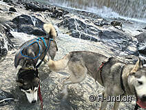 Geparkt haben wir in Schiers. Zuerst ging es mal an dem noch ruhigem Kieswerk vorbei und kurz danach gönnte ich den beiden Hunden die erste Planschpause. Ein wenig Trittsicherheit von Hunden wie Menschen ist in diesem Tobel um ans Wasser zu gelangen von Vorteil. Schnell erreichten wir darauf die grosse Grillstelle. Bis hier dürfte man mit dem PW hinfahren. Und es hätte dort auch noch eine grosse Hütte der Gemeinde Schiers zum mieten.
