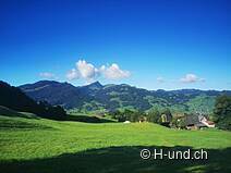 Schöne Aussicht zu den Churfirsten, Speer, Tweralp und ins Tal und gegen Ennetbühl. Abzweigung nach rechts zum Bauernhof nehmen, um dem Hang entlang zum "Bergässli" zu kommen. Nun erblickt man die Kirche mit Wohnheimanlage von Neu St.Johann.