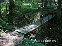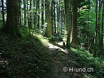 Vom Bahnhof aus geht es über einen schmalen Pfad, dem Wanderweg entlang Richtung Schindlet/Höchstock. Bergwärts durch das Hundschilen (Tobel) erhascht man immer wieder einen kurzen aber weiten Ausblick. Einmal aus dem Wald geht es über eine Feldlandschaft bis zur Strasse, welche man überquert, um dem Wanderweg Richtung Höchstock/Sternenberg zu folgen. Wieder auf dem Feldweg angelangt geht es schnurstracks zum Höchstock, wo man sich für oder gegen eine Verlängerung von 3km entscheiden kann. Entweder geht es dabei durch ein kleineres Tobel an Wasserfällen und Feuerstellen vorbei oder weiter bis nach Sternenberg von wo aus man entlang dem Lettenbach hinab zum Hof von Akau wandert. Hier schliessen sich die beiden Wege wieder zusammen. Es geht einer kaum befahrenen Strasse entlang hinunter zur Töss, dort biegt der Weg nach der Brücke rechts ab und man begegnet vielen Möglichkeiten, zwei und vier Beine abzukühlen und etwas zu verweilen. Zwischen den Geleisen und der Töss geht es gerade aus zum Bahnhof Bauma.