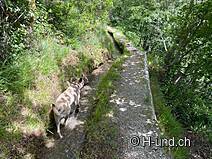 Nach einem steilen Aufstieg und kurzen Durchquerung einer Yak-Weide sind wir ‚oben‘ bei einem kleinen Wasserfall angekommen und sind dem Suonenweg gefolgt. Einfach toll!