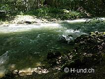 Bade- und Trinkmöglichkeiten bei Beginn der Schlucht (von Frinvillier aus), Leinenpflicht.