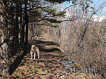 Zwischendurch gibt es Wege welche direkt zum Fluss führen. Diese geniesst Kaya bereits jetzt schon (haben heute 20 Grad) um sich so richtig auszutoben und zu erfrischen.