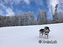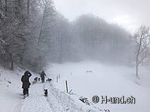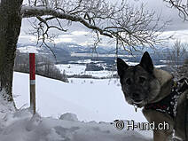 Der Weg ist gut beschildert und wir sind die einzigen Menschen weit und breit im verschneiten Winterwunderland. Wir folgten dem Schild 'Albishorn' immer der Strasse entlang, bis ganz nach oben. Die Steigung ist aber sehr angenehm. Unterwegs hat es glücklicherweise immer wieder Robidogs, das erfreut uns da wir noch etwas mehr Hunde als manch andere dabei haben. Der Weg ist absolut kinderwagentauglich und es besteht bis zum Restaurant auch keine Leinenpflicht, was unsere Hunde sehr erfreute. Der Weg führt auch nicht durch den Wald sondern nur kurze Abschnitte am Waldrand entlang. Das Wetter spielt nicht unbedingt mit, aber als wir oben beim Restaurant (Hunde erlaubt) ankommen zwinker uns die Sonne entgegen und wir geniessen ein wunderschönes Panorama. Die herrliche Aussicht reicht bis nach Zug, dem Zugersee und sogar ein Spitz vom Vierwaldstättersee. Herrlich! Mit dieser Aussicht und einem Lächeln im Gesicht geniessen wir den Abstieg zurück zu unseren Dogmobiles. Alle unsere Hunde waren super happy und wir auch! Tolle, kurze Wanderung die mit sehr viel Ausblick belohnt wird!
