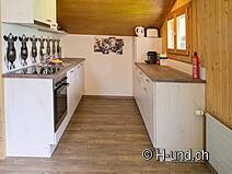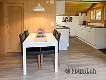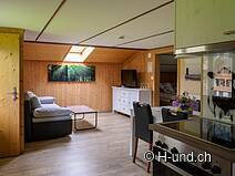 The Alpenstube is a unique 3.5-room vacation apartment in Kandersteg for four people. It has two bedrooms, a living room with a sofa bed and dining table. The spacious kitchen with dishwasher and the modern bathroom ideally complement the overall living space. TV and W-Lan connection as well as bed and bath linen are also available.