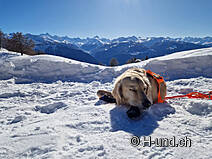 We take the ascent comfortably under our feet/paws and enjoy every moment when the sun shines on our faces. The magnificent Alpine panorama accompanies us on the whole tour and we can never get enough of the view.