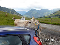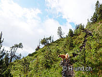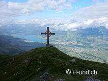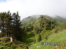 At the parking lot Belina and I started our hike accompanied by some curious dairy cows. The path is well signposted and so we turn after a short time on a meadow path. From then on we go uphill into the Arvi forest. We dive into a diverse nature with different flowers, bushes and shrubs. The path is steep and surefootedness is required. As soon as the Arviwald is behind us, we catch the first rays of sunlight and for a short moment a wonderful view. Then the fog moves in and envelops us completely. The hoped-for view from the Arvigrat is missing. On the descent to the Arvikreuz, the weather surprises us with the breaking of the clouds. We take a break at the Arvikreuz and enjoy the magnificent view. The efforts were more than worth it. Via an alpine meadow and the Heitletswald we finally hike back to the starting point of this extremely varied hike.
