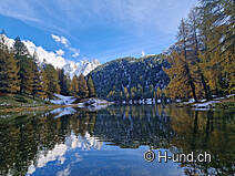 With already so many beautiful moments we arrive at the Lai da Palpuogna. The reflection is tremendous, a natural spectacle. We walk around the lake and enjoy every moment before the bus brings us back to Bergün.