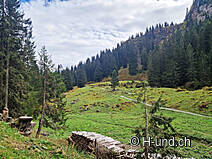 The hike starts at Grotzenbüel (accessible via the Hüttenberg-Grotzenbüel gondola lift) and begins with a gently sloping path with a magnificent panorama to the Unterstafel of Alp Braunwald. A path that leads across meadows and through sparse forests ends in the valley of the Bösbächi. There you can enjoy local food in the cozy restaurant Bächibeizli. A beautiful mountain path then leads to the Oberblegisee.