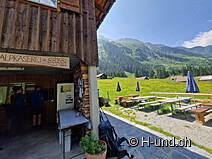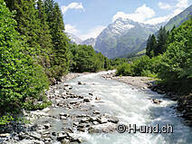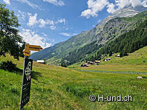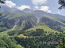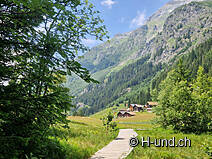 Slightly ascending the path leads us along the brook again over a bridge until we reach the alp Stössi. Here you should plan enough time. On the one hand, to taste the best alp cheese (and other fine products) directly on the spot, to stock up on provisions for home or, if you like, to use the spacious and well-equipped fireplace for your lunch break. All senses are satisfied here, the magnificent alpine flora offers enchanting color contrast to the glacier stream.