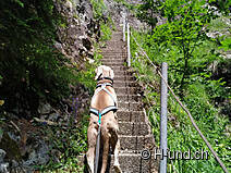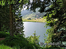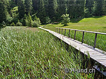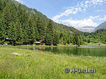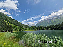 We take the same route again under our feet for a few meters before we cross the stream again and tackle the ascent to the Golzerensee. Here you must be surefooted and your dogs must not have any difficulties with climbing stairs. Fortunately, there are always resting benches to take in the fantastic mountain scenery. Once you have reached the top, you will see the picturesque Golzern-Bergsee (nature reserve), which invites swimmers to refresh themselves.