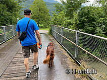 We park our car in Alpnach Stad am See, the parking is free. The train station is just next door and also the boat landing is not far. This tour can be combined with a boat trip on the Vierwaldstättersee or the steepest train to the Pilatus. It has a lot of water, but we still choose an overcast morning in summer for our senior, it is not a forest walk. We start towards the lake and take the beautiful tree-lined avenue south. The whole path is decorated with many beautiful benches and a lot of robidogs. Over a Brüggli we come to the most modern shipyard of Switzerland, the Marinecenter Herzog. Here we can admire many yachts. From here we go to the lake in the nature reserve, also there is a cozy Badibeizli. Kesh takes the first bath in Lake Lucerne. After the nature reserve we go along the Schlieren canal. There are supposed to be orchids here. The view becomes clear to the airfield of Alpnach. Afterwards we make a loop towards dorf and back. It would also be possible to walk further towards Sarnen. Kesh bathes a few more times this is possible all the way. Shortly before the car there is a camping for long term renters.