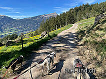 At an altitude of 818 metres above sea level, it is worth turning right and following the wider path for 100 metres: On the one hand, you are rewarded with a view and on the other, there is a refreshment stop for the dogs.