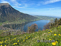 With a wonderful panoramic view of the Rigi and later also of Lake Zug, we now take a few steps straight ahead. You should allow enough time here to enjoy the magnificent view.
