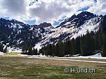 This time I parked a little further up at the parking lot Lioson d'en Bas. Here also starts the route (r. rum ) to Pic Chaussy. A popular summit with the Vaudois. The path starts already at the beginning quite steep, but not dangerous. Passing small mountain streams and the Buvette des Petits Lac which lives up to its name. If you want, you can stop here and try the various homemade lemonades. Since dog, cat and Co are at home here, we continue our hike, further to the Pic Chaussy. Again and again I look at the biodiversity of the beautiful flowers and let the view work on me. At the top, we take our lunch break and enjoy the 360 - degree panoramic view. The ascent is worth it. Sun and clouds alternate, but the temperatures are perfect for hiking. After a longer break, we make our way back along the same path and then turn right towards Lac Lioson. Already from far above, one sees on the picturesque mountain lake, which shows itself in the sunshine in the beautiful emerald green. Here we take another break, because the lake invites you to stay and swim (Attention: On weekends / vacations a popular destination). Here, too, there is the possibility to stop and spend the night (whether dogs are allowed, would have to be clarified). We linger for a while at the lake and then get back on the road. From the lake it goes on a wide natural path down to the parking lot. ( ATTENTION: It can happen that there are cows / sheep on the alpine pastures. In these areas dogs are to be kept on a leash ). We had encountered on this day, late June, on this route nothing.