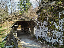 You can park right at the train station and follow route 273. We pass the impressive chapel in the direction of the hydroelectric power station. We follow the Saane on the left side, which forms a lake further up. Cozy places invite you to barbecue and cool down. The path continues to meander up and down along the water to the historic, covered wooden bridge Pont de Lessoc.