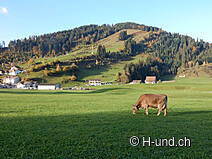 After our break, we made our way downhill, towards Rothenthurm. Again, it was mainly meadow paths, which led through cow pastures, on which we hiked.