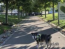 We found a nice walk that is doable for everyone. We started at the train station Otelfingen Golfpark. To get off the train, however, you have to overcome quite a step (see photo). If that doesn't work, just start at the Otelfingen train station and walk or bike to the golf park within 15 minutes. Boris could always refresh himself at the stream, the golfers at the beginning did not bother him.