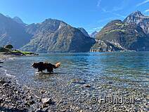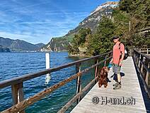 Further along the lake Kesh can bathe again. Here the Way of St. James is described on the wall. Soon we see Sislikon with the boat landing. From here we take the boat back to Flüelen.