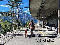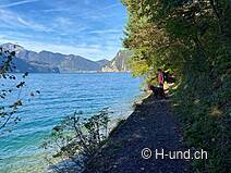 Then we go under the railroad and about 50m up the Axenflueh. We always look at the wild Urner basin and pass through pine forests. The route goes along the Axenflueh, which gave the name to the famous Axenstrasse. It also has steps again and again. In the half we come twice for a short stretch to the car road.