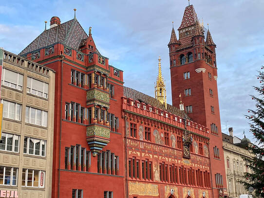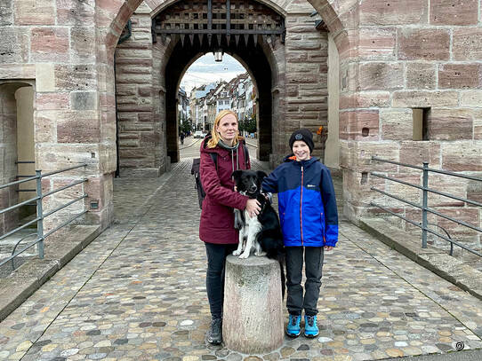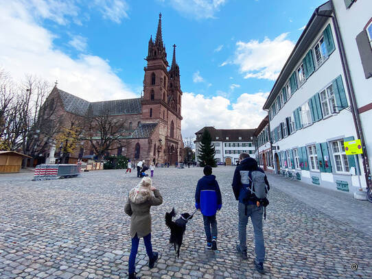 With the printed tour file of "Finding Daniel" in the bag, we set off on this Sunday to Basel. on our way to Basel on this Sunday. We parked our car in the parking garage. If you want to arrive by train, you can find out in the tour file which bus to take to the starting point. bus to the starting point.