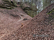 The Kuzenhöhle, also known as the Chuzehöhli, is located in the Zofingen forest near old sandstone quarries. This environment offers exciting opportunities for play and discovery with fireplaces and exciting nooks and crannies.