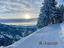 Right at the beginning we dive into a wonderful winter world. The panoramic view stretches from the "Talchessel" Schwyz, into the surrounding mountains as well as to Ybrig and as far as Einsiedeln. But we have also chosen a dreamlike morning. The path is perfectly groomed in winter and on this Tuesday morning we hardly meet any other hikers. 2-3 times the trail crosses the ski slope, but this is no problem for us. On the weekends there is certainly more going on here.