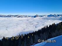 From Beckenried the gondola takes us to Klewenalp at 1592 meters above sea level - high above the sea of fog towards the sun.
