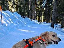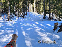 Watch out: every now and then you have to cross the ski slope or partly the slope leads a multiple use. We recommend the tour only on weekdays (otherwise too many people) and for experienced sledders (11km).