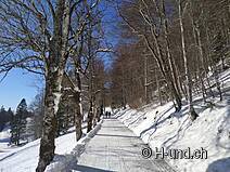 Parking is available in the Oberdorf right by the valley station. From here we take the gondola (dogs ride for free) and ride up to the Weissenstein. From the Restaurant Sennhaus the route (590) starts towards the west Hinterer Weissenstein, without a big climb over the high plateau. Attention the path is marked only in one direction. In good weather you have a wonderful panorama over the whole alpine chain. Arrived at the gondola station again, I decide to rent a toboggan (10 CHF) and to whiz with it down to the valley. The leisurely tour is also very suitable for children.
