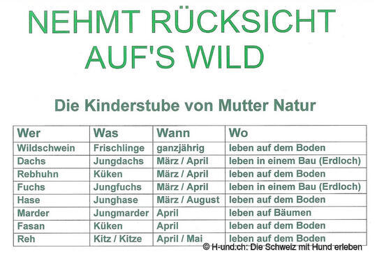 Pendant la période de reproduction et de mise bas, de nombreux animaux sauvages, comme les chevreuils, les oiseaux et les lièvres, mettent au monde leur progéniture. Durant les premières semaines de leur vie, les jeunes animaux ont particulièrement besoin de protection et peuvent être mis en danger par des influences extérieures. Notamment par des chiens qui traquent et braconnent. Un danger bien réel qui peut, dans le pire des cas, coûter la vie à la progéniture des animaux sauvages.